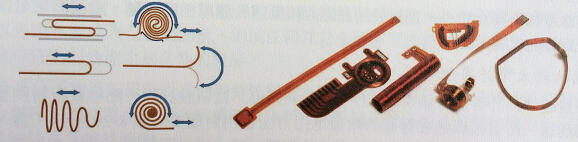 有一些聪明的方法与技术,过去几年已经被工程师发展出来,可以让FPC达到期待的弯折或挠曲特性。运动的类型与范围,从线延伸与收缩到旋转挠曲或各种角度,从5°、10°到超过360°。图8.27所示,为这种观念的范例。