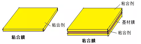 (3) 粘结膜:是在一个基材膜的二面或一面浇注粘结剂而形成,也有无基材的纯粘结剂层的粘结膜,如图5。粘结膜有不同粘合剂类型和厚度规格。粘结膜是用于多层板层间粘合与绝缘。