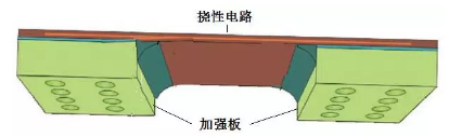 另外,有的FPC柔性电路板用到加强板(Stiffener) 材料,如金属片、塑料片、树脂膜与环氧玻璃基材等。加强材料的作用是加固挠性电路板的局部,以便支撑与固定,如图6。因为并非FPC柔性电路板都使用的,所以单耗标准中不列入。