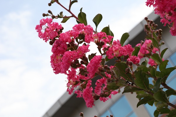 这就是紫薇花,并且就开在赣州深联软板厂的生活区里,在这盛夏酷暑时节。天热得坦坦荡荡,我们的紫薇花却是开得红红火火。上班路上,满眼的姹紫嫣红,让火热的夏天都被装扮得缤纷浪漫起来,干劲也瞬间装载满满。