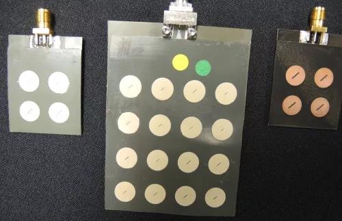 波音公司展示几种类型的飞机印刷天线,如图中所示的10GHz产品。波音和美国空军都在实验能装进飞机机翼的适形天线(conformal antenna)。