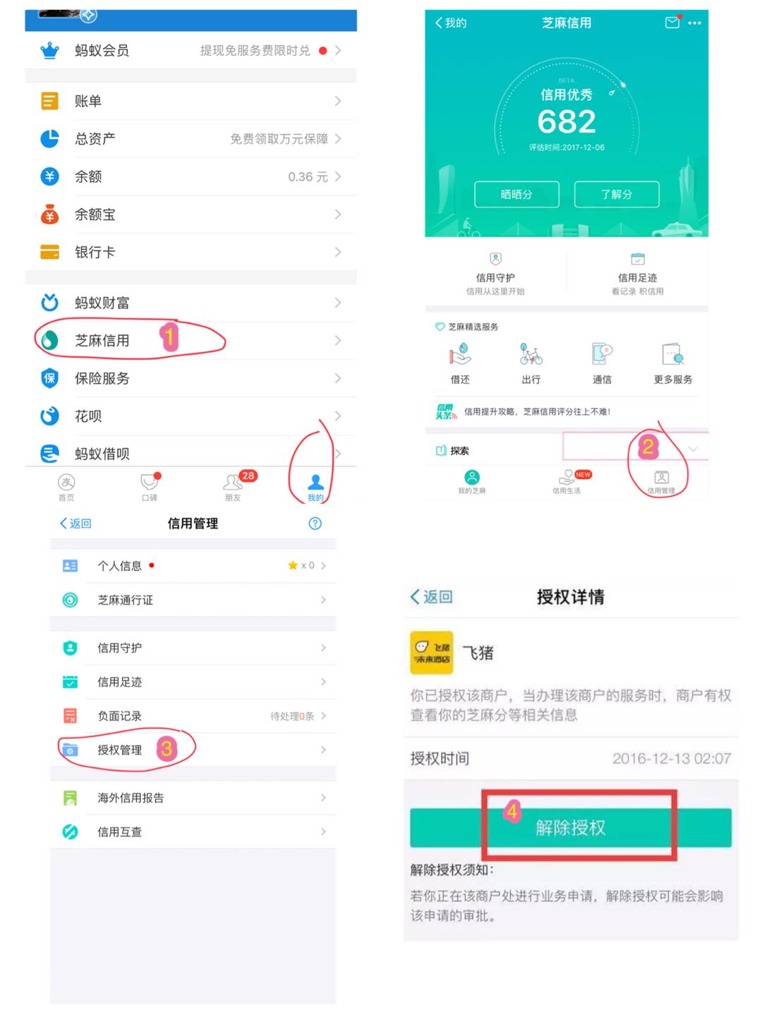 当点完第三步的时候,你就会发现你的芝麻信用已经授权给了谁、谁、谁了。然后把每个商户点开之后,均可以看到第四步再点解除授权就好了!