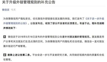 这一回是关于封号的。为保障用户隐私安全,优化微信外部链接体验,微信团队近日对《微信外部链接内容管理规范》相关规则进行了进一步升级,新规将于5月29日起正式生效。