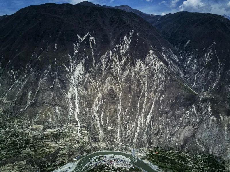 △ 2008年5月12日 汶川县雁门镇地动山摇,山体骤然滑落,留下道道沟壑。