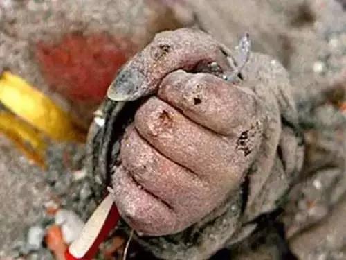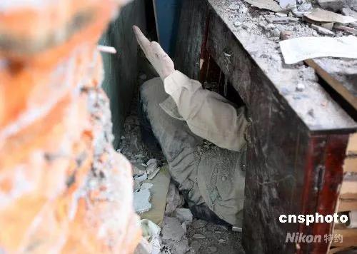 ▲2008年5月16日,被困废墟72小时的代军勇伸出等待救援的手,经过23小时的营救,他死里逃生。