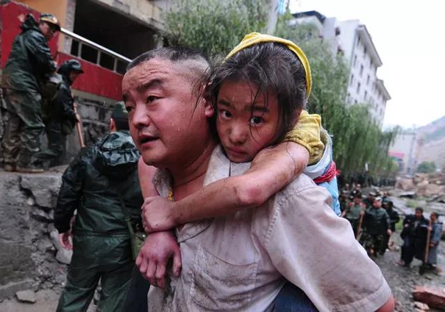 ▲2008年5月13日,北川县城,一名父亲经过10小时挖掘,救出了自己的女儿。