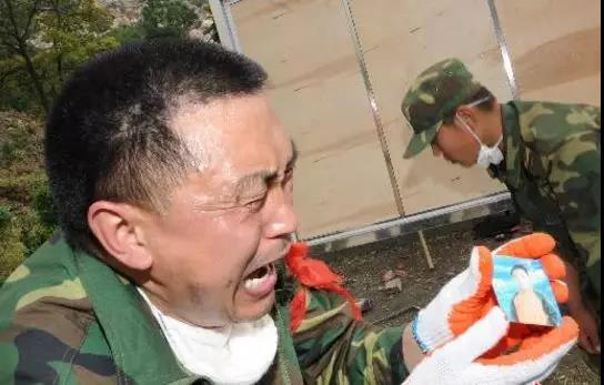 ▲2008年5月15日,在北川县城参与救助的解放军官兵发现儿童的照片,忍不住痛哭。