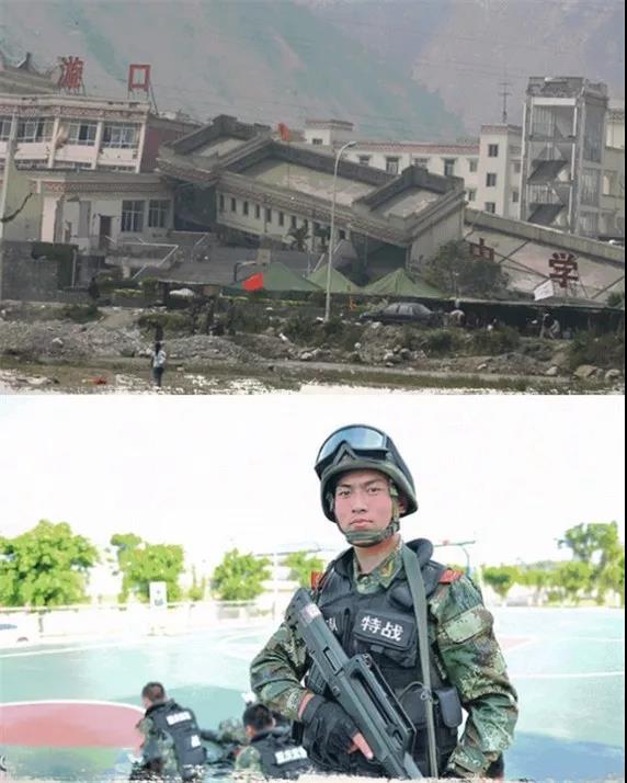 ▲2008年5月12日,正在丹巴县二中读高中的张国全,经历了汶川地震。2017年8月11日,九寨沟地震灾区,这张照片的主人公就是他。