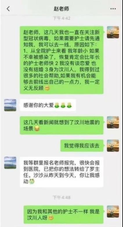 ▲这是四川省第四人民医院内科四病区护士佘沙两次请战出征武汉的理由。