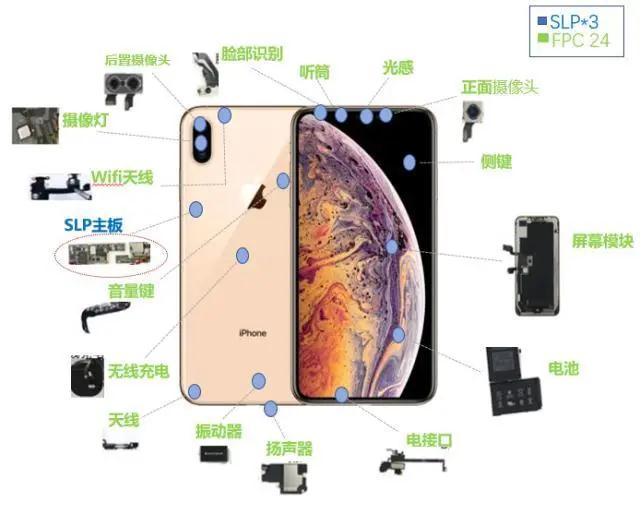 其他品牌的智能手机FPC用量普遍在10-15块,单机价值也相对便宜。iPhone XS MAX电路板使用高达27片,包括3片SLP主板及24片软板,预测价值量超过70美元。