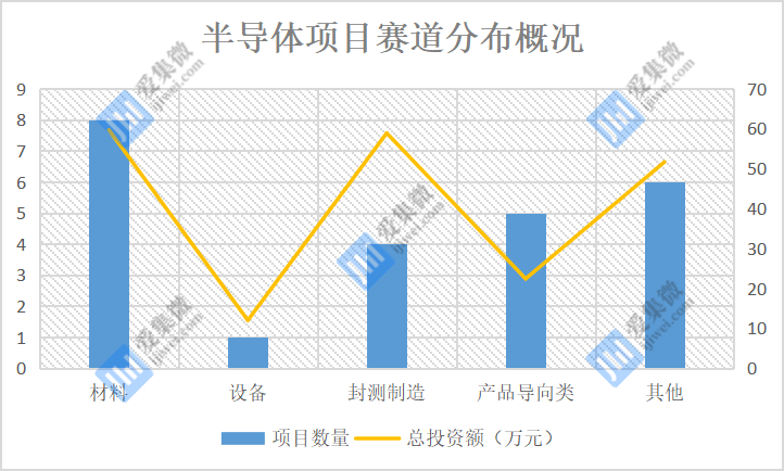 根据公开信息整理分析来看,在半导体领域,材料类项目依然是推介项目热点方向,其次为封测制造和产品导向类项目,后者包括第三代半导体芯片、功率半导体、激光雷达芯片等。