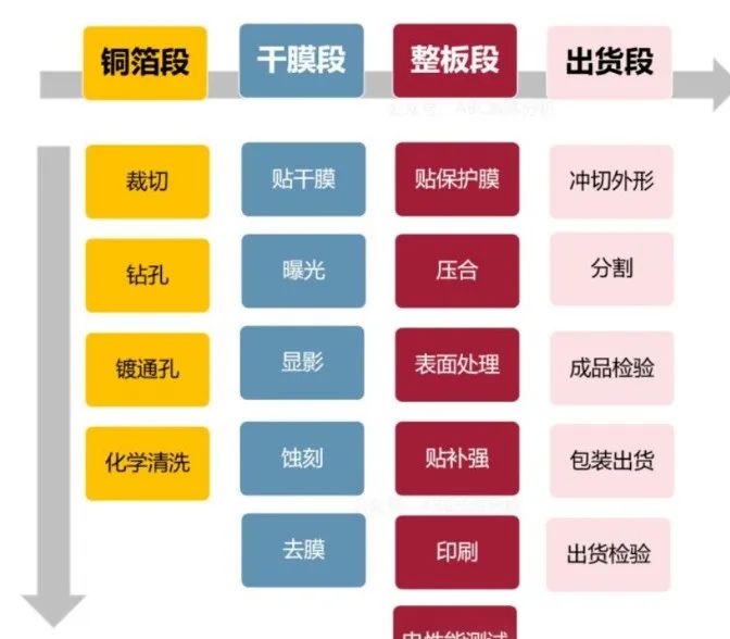 FPC单双面板的生产流程如下: