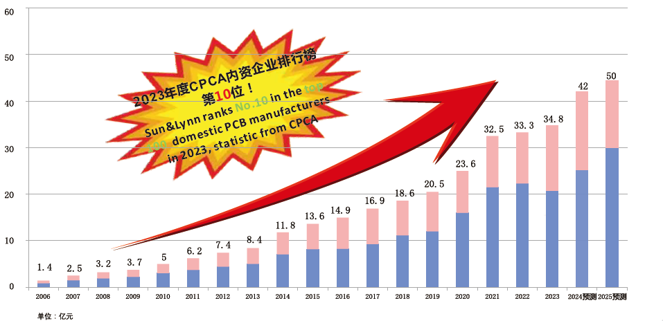 深联电路成立于2002年,在广东深圳、江西赣州及广东珠海设三个制造基地,员工总人数5000人,目前珠海工厂筹建中,预计今年年底Q3投产,深联自2004年起销售额每年保持10%的增长,至2023年销售额达到34.8亿人民币,在CPCA内资百强线路板企业中排名第10位,已发展成为中国颇具价值的PCB制造企业,为通讯、电源、新能源、安防、工控、医疗、汽车等领域的全球客户提供PCB、HDI、软硬结合板、FPC和FPCBA的一站式专业服务。