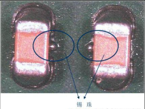 一、锡珠主要出现在芯片电阻和电容元件的一侧