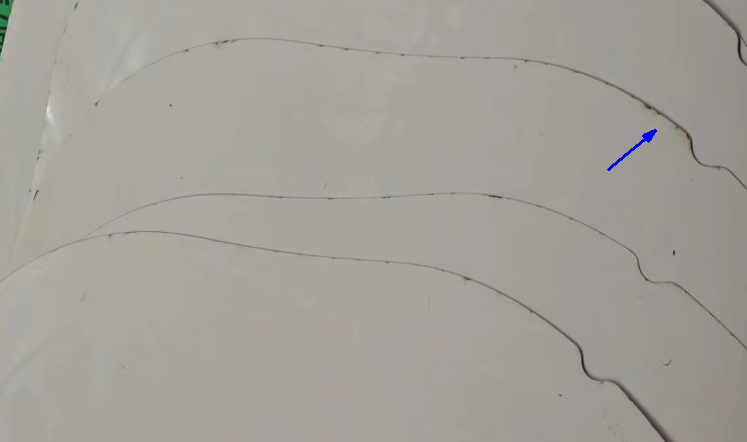 但激光在切割时因温度太高,会将PI膜烧蚀成碳粉,并反溅到板子边缘上,形成碳粉残留,且不易清除,影响外观,且激光切割效率较低,成本较高,不适合大批量板。