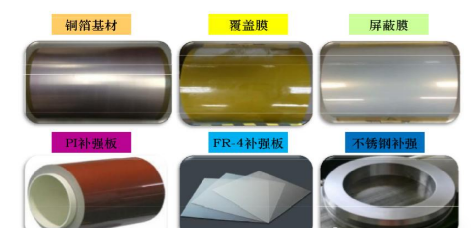 其主要原材料有:1、基材,2、覆盖膜, 3、补强, 4、其它辅助材料。
