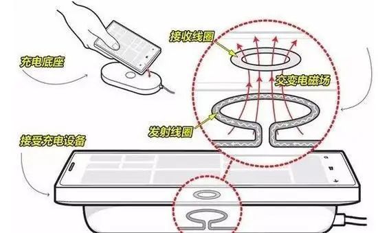 电生磁,磁生电,电和磁场在一定条件下其实是能够互相转换的。无线充电就是在无线充电基座(发射器)里将交流电转成磁场输出,而设备(接收器)再将磁转成交流电给设备使用。这样一个过程就实现了无线充电。
