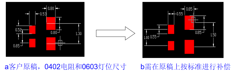 主键的灯/电阻/电容焊盘要按标准设计补偿。