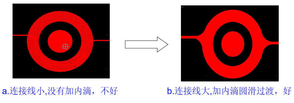按键的连接线线宽最小0.2mm,在与按键的交接处要加圆滑内滴过渡,所以焊盘都要加内滴。