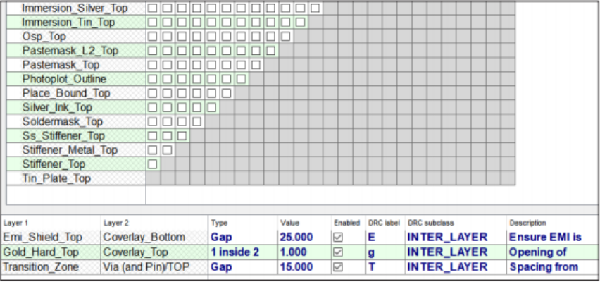 层结构(亦作橫截面)是根据设计要求设置的。在刚柔结合的设计中,并不是电路板的所有区域都含有所有的层。通常,柔性区域的布线层比刚性区域少。我们必须确保避免在实际上不存在层的区域进行布线。