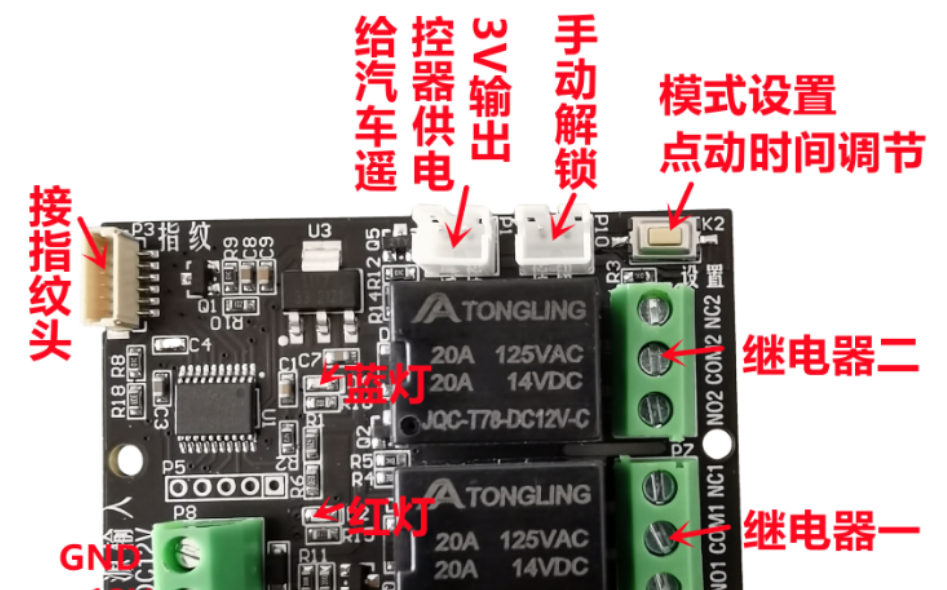 3.录制的指纹信息和设置的点动时间、继电器模式等断电后不会丢失。