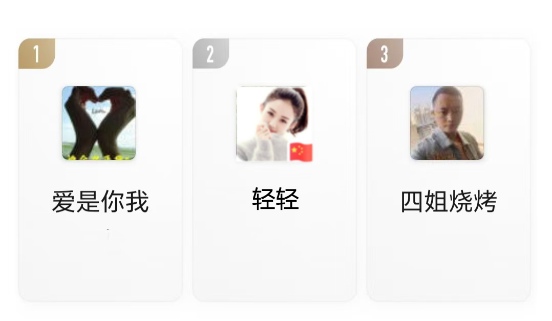 点赞最多前三名粉丝
