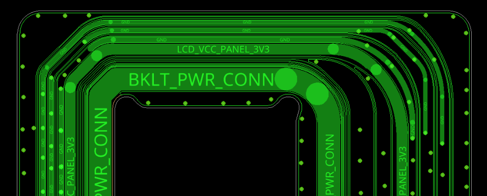 第二点就是弯折区内走线尽量直,不要有弯曲,如果有弯曲,也要沿着板子方向弯曲,如下图所示,走线的弯折弧度尽量与板子弯折弧度保持相同。