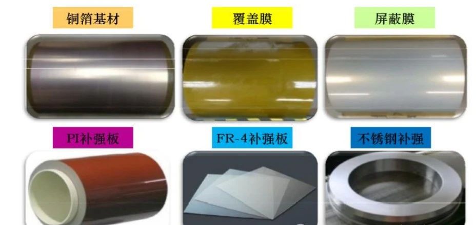 FPC原材料有哪些?基本上都会有原料基材、铜箔基材、PI补强板、覆盖膜、屏蔽膜FR-4补强板、不锈钢补强。