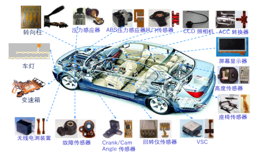 汽车内部有着各种各样的传感器、显示器和控制系统,它们之间需要可靠的电路连接。