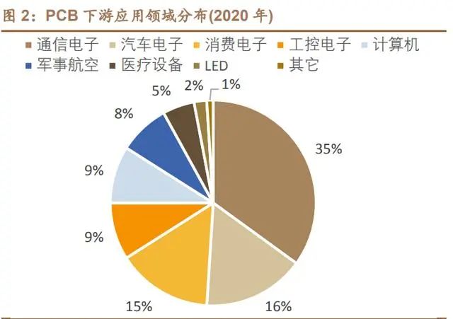 PCB 在汽车中应用广泛,同时汽车也是 PCB 重要应用领域。PCB 作为电子 元器件的支撑,在传统汽车中主要应用于动力控制系统、车身传感器、导航系统、 娱乐系统、导航系统等。从 PCB 产业看,2020 年汽车已经成为 PCB 第二大应 用领域,占比约为 16%。