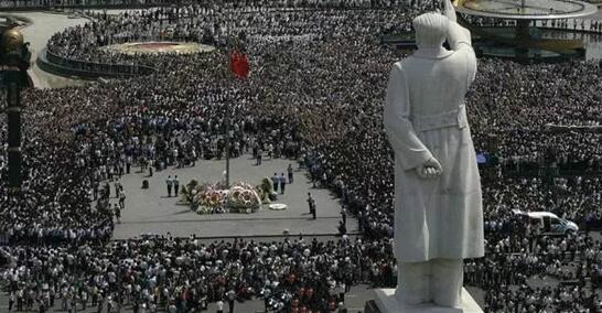 2008年5月19日14时28分,成都天府广场降半旗志哀,四川省万余人为汶川大地震遇难者默哀3分钟。