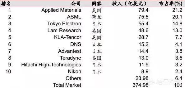 这里面美国、日本占据了绝对的优势,综合来看,在整个半导体行业,最厉害的还是美国和日本,因为半导体设备实在是比半导体制造还要复杂难攻的技术。